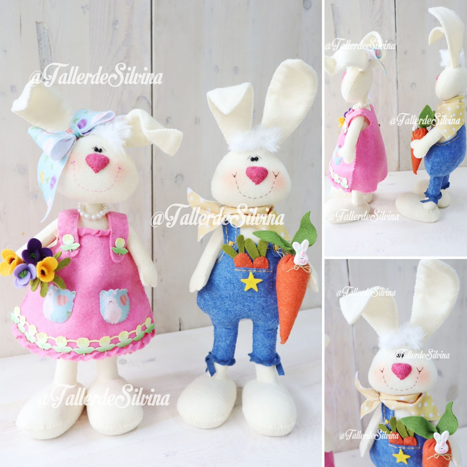 Disfruta creando esta encantadora pareja de Lola y Mateo Conejitos de Pascua, un proyecto lleno de ternura que combina creatividad, costura y decoración artesanal.